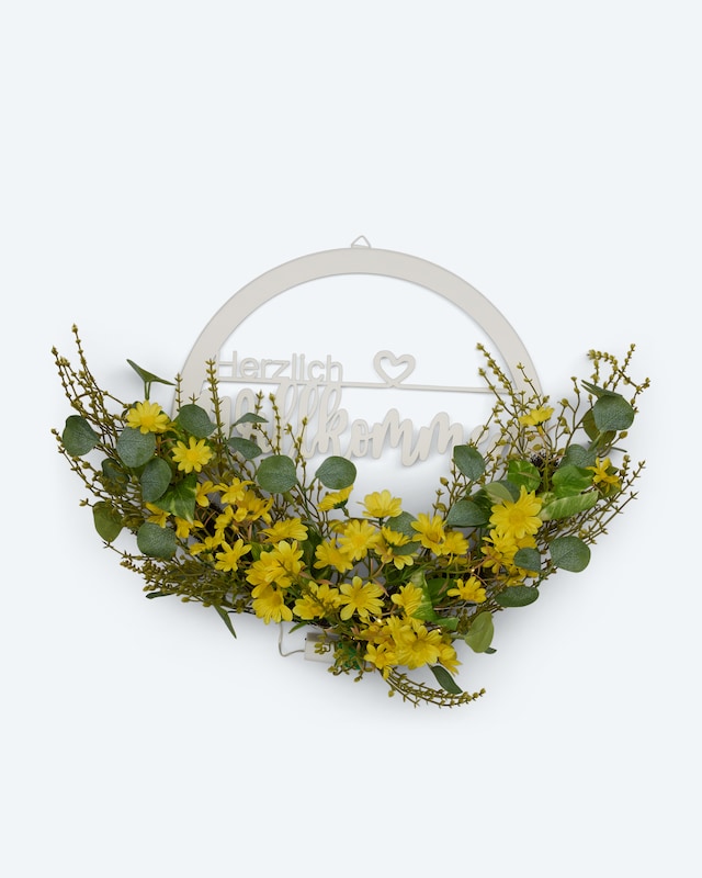 Hübscher LED-Türkranz in fröhlichem Gelb