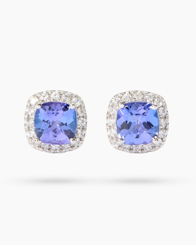 Luxuriöse Tansanit-Ohrstecker mit Zirkon-Umrandung